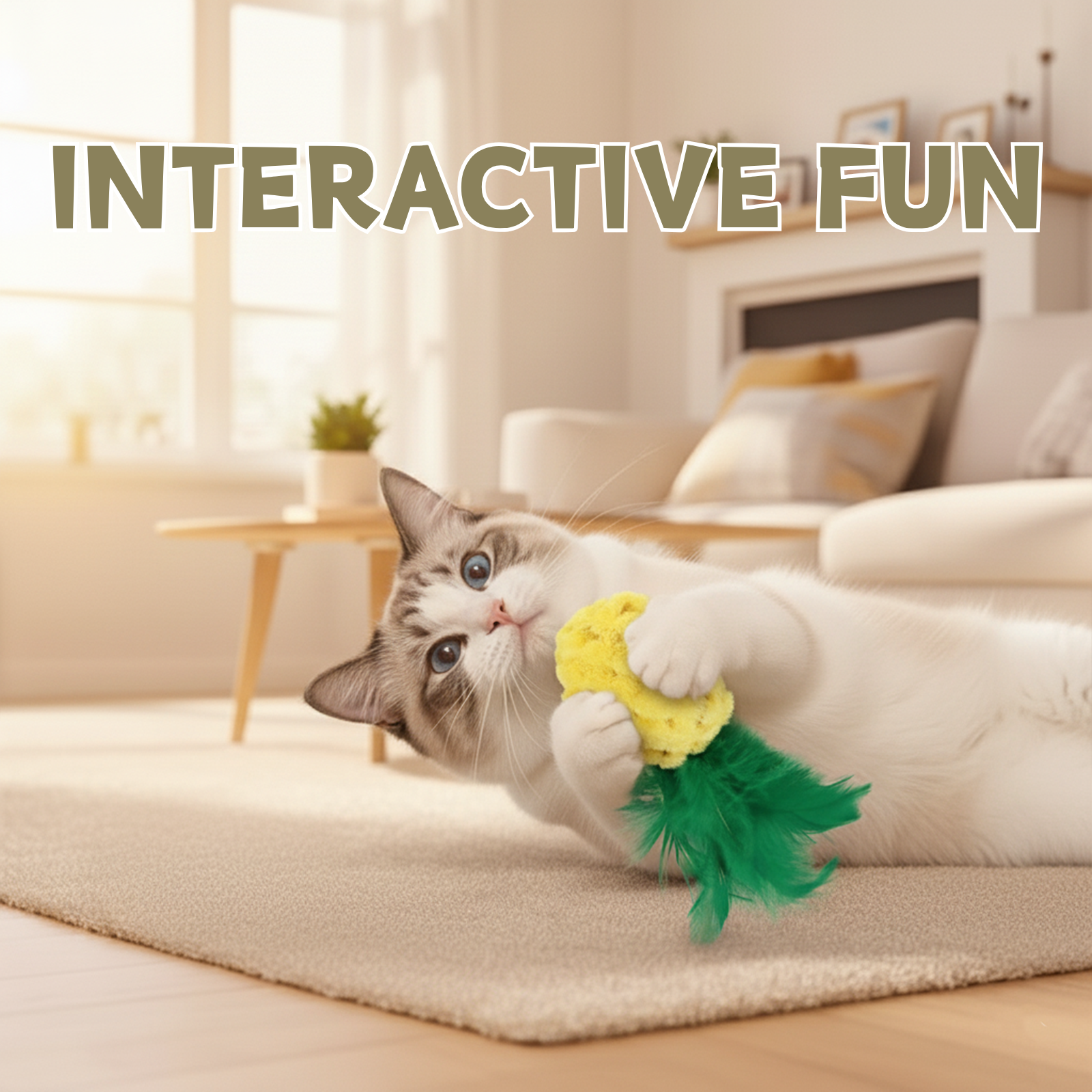 Bright and fluffy, this adorable pineapple toy adds a pop of tropical fun to your cat’s daily playtime.🪶 Soft Feathers for Interactive Swats